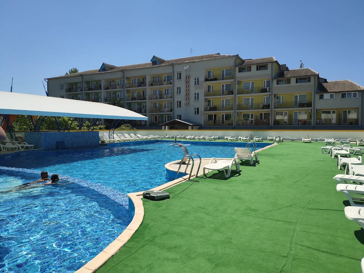 Прекрасное место для отдыха с детьми. Ухоженная территория, благоухают розы, бассейн, спортивные площадки. Номера без излишеств, но чисто. Столовая отличная, очень вкусно готовят, большой ассортимент и всегда все свежее, цены соответствуют качеству. Были в июне 2021г, номер для двоих 650грн. До пляжа 5-7 минут ходьбы.